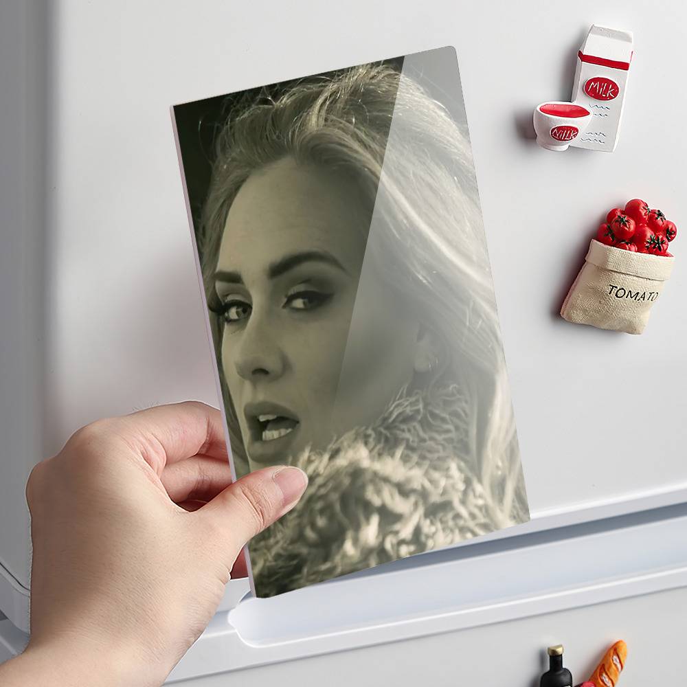 Design your everyday with Adele fridge magnet you will love to snuggle up with. Match your style with patterns and designs from our professional design team. Use celebriity photoes to design the refrigerator magnets to brighten your whole day. The refrigerator magnets are durable and easy to clean. They are easy to wipe clean with a slightly damp cloth. They can also be flat and firmly fixed on the metal magnetic surface of any object. Size: 14.8*9.8CM Crafting time 3 to 5 business days.
