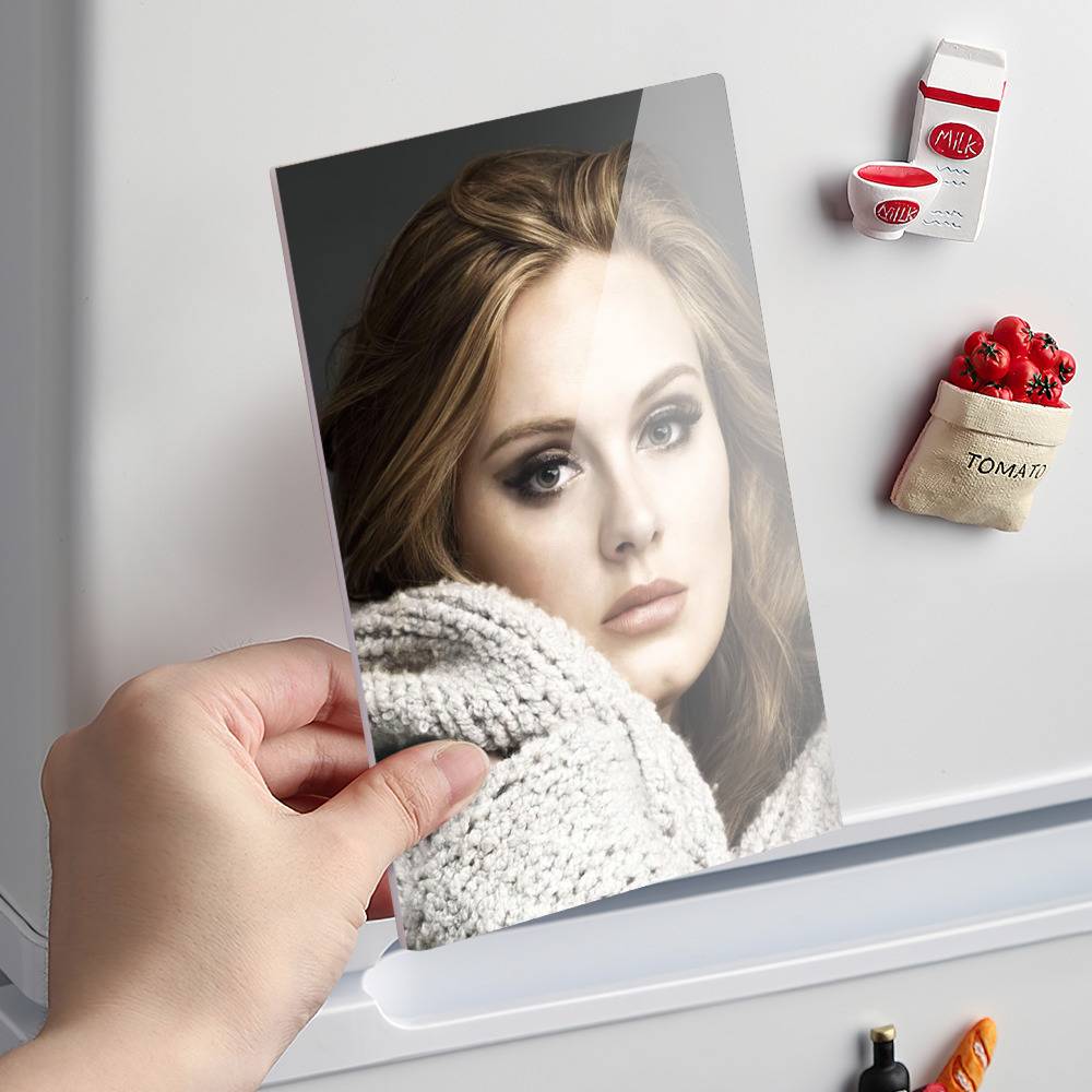 Design your everyday with Adele fridge magnet you will love to snuggle up with. Match your style with patterns and designs from our professional design team. Use celebriity photoes to design the refrigerator magnets to brighten your whole day. The refrigerator magnets are durable and easy to clean. They are easy to wipe clean with a slightly damp cloth. They can also be flat and firmly fixed on the metal magnetic surface of any object. Size: 14.8*9.8CM Crafting time 3 to 5 business days.