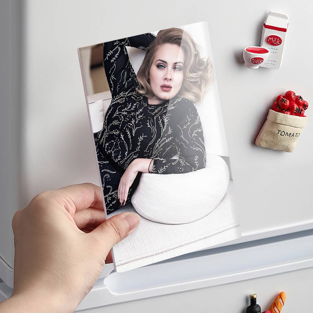 Design your everyday with Adele fridge magnet you will love to snuggle up with. Match your style with patterns and designs from our professional design team. Use celebriity photoes to design the refrigerator magnets to brighten your whole day. The refrigerator magnets are durable and easy to clean. They are easy to wipe clean with a slightly damp cloth. They can also be flat and firmly fixed on the metal magnetic surface of any object. Size: 14.8*9.8CM Crafting time 3 to 5 business days.