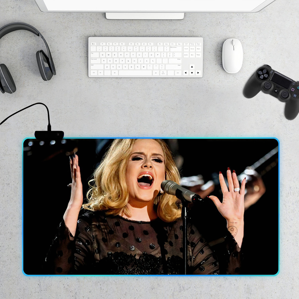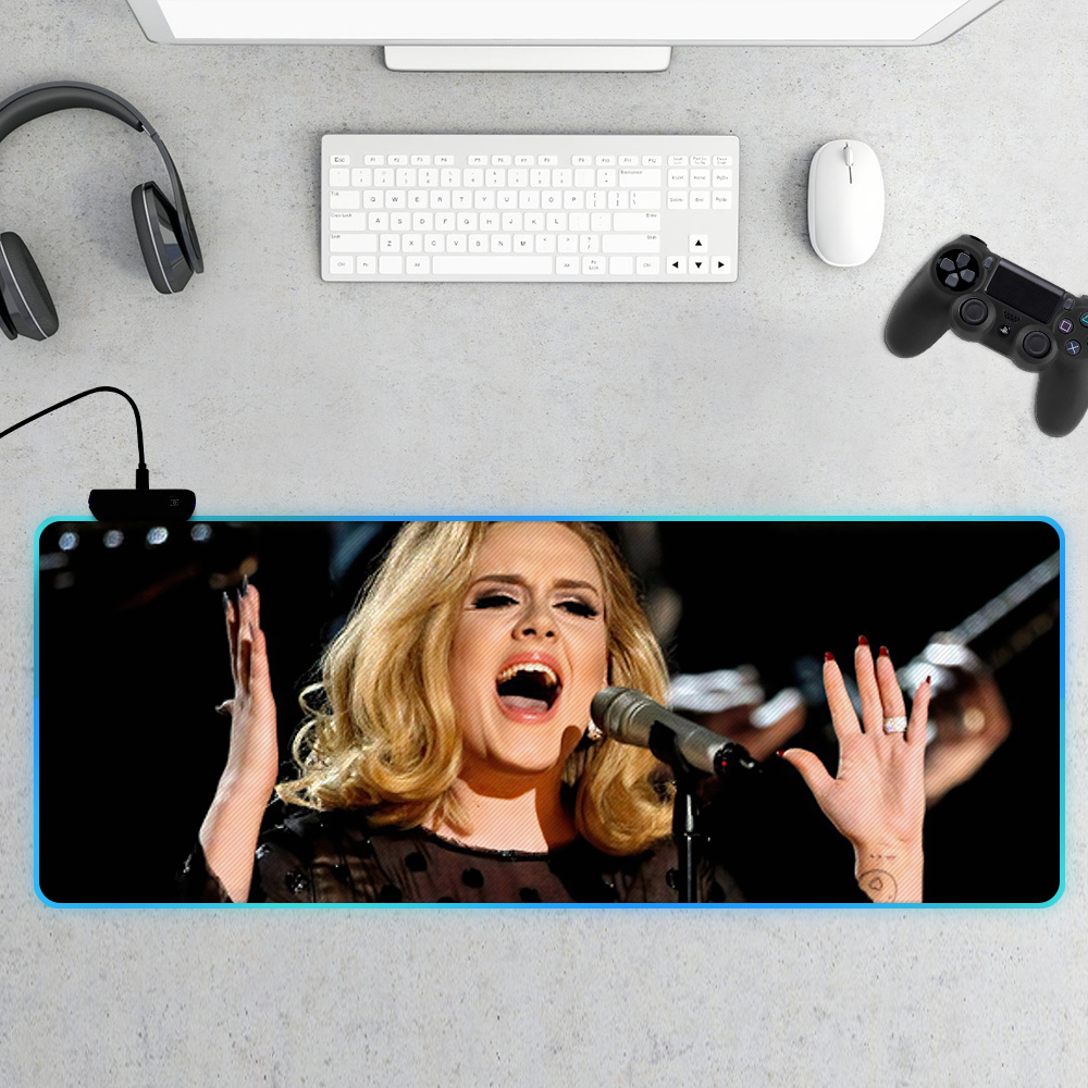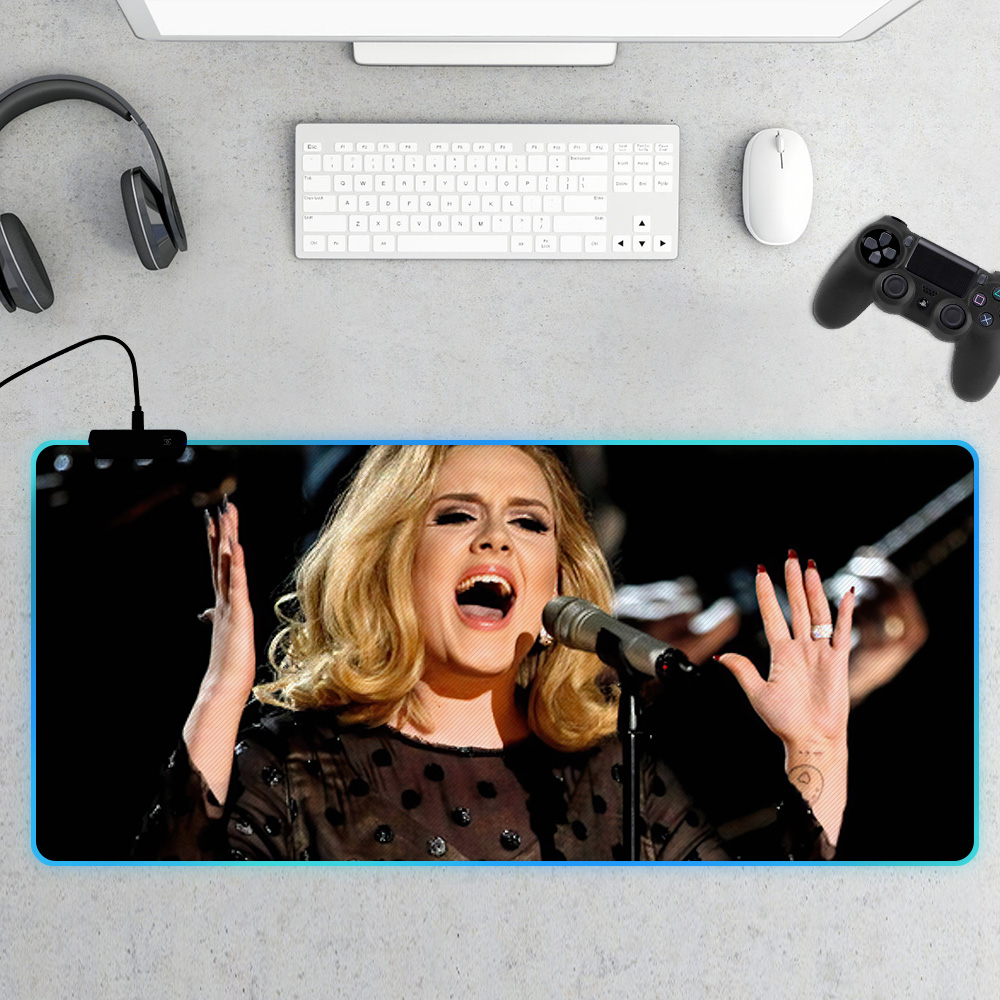 - Design your everyday with Adele mouse pad you will love to snuggle up with. Match your style with patterns and designs from our professional design team. Create a personalized gift with a photo of your favorite celebrity. Our mouse pads have two styles: ordinary and RGB. Each mouse pad is carefully printed with vivid colors, bright, no fade. The mouse pad with RGB has multi colors modes: Static Colors, Rolling Subtitles LED effect, Breathing LED effect, Rainbow LED effect. RGB mouse pads are charged by USB, plug and play, no driver needed. One-touch control designed to switch the light colors, very convenient to use. Size: 31"X12", 30"X16", 35"X16" Material: Rubber Thickness: 4mm