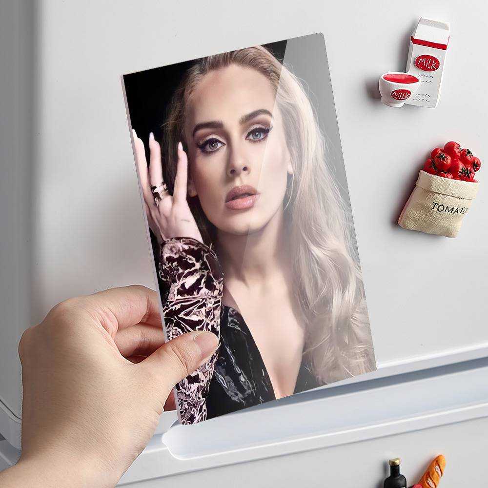 Design your everyday with Adele fridge magnet you will love to snuggle up with. Match your style with patterns and designs from our professional design team. Use celebriity photoes to design the refrigerator magnets to brighten your whole day. The refrigerator magnets are durable and easy to clean. They are easy to wipe clean with a slightly damp cloth. They can also be flat and firmly fixed on the metal magnetic surface of any object. Size: 14.8*9.8CM Crafting time 3 to 5 business days.