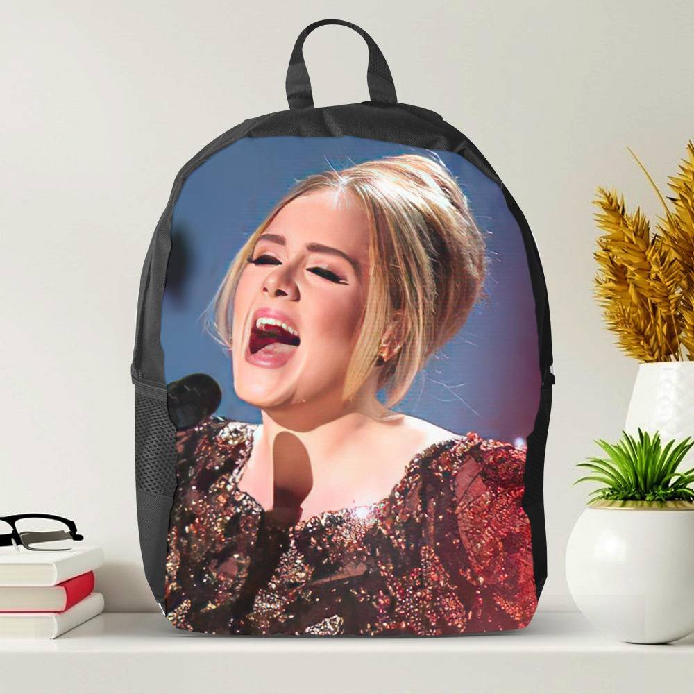 - Design your everyday with Adele backpack you will love to snuggle up with. Match your style with patterns and designs from our professional design team. Original design. Create a personalized gift with a photo of your favorite celebrity. Material: This backpack is made of water resistant and durable Oxford cloth with metal zippers. Product Size: 16.5" * 12.5" * 5.5" Applicable People: Recommended for Age 6+ Applicable Scene: School, travel, climbing, shopping, zoo, park, outdoor sports, etc.